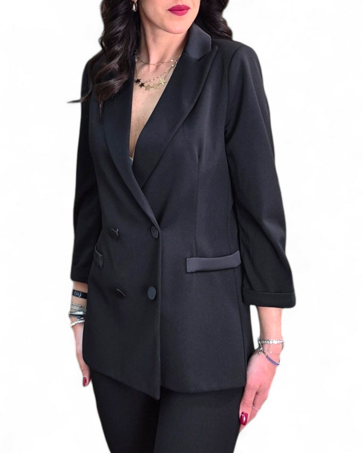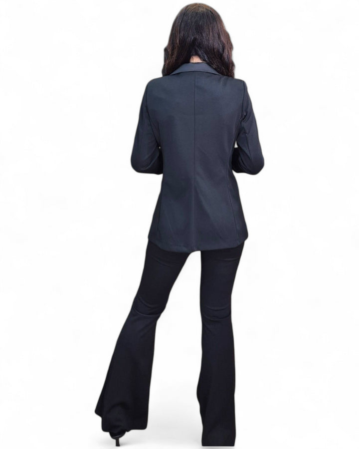 Senti la sicurezza e l'eleganza con il nostro completo Sienna. La giacca a doppio petto e il pantalone a zampa creano un look sofisticato e raffinato. Perfetto per ogni occasione, ti farà sentire al top in ogni momento. Aggiungi un tocco di classe al tuo guardaroba con il completo Zampa Sienna.