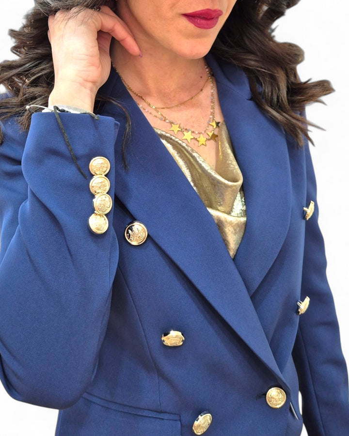 Aggiungete un tocco di classe al vostro guardaroba con la giaccadoppio petto Palio 2. La giacca presenta un elegante doppio petto con bottoni oro che aggiunge un tocco di lusso e stile al vostro look. Perfetta per occasioni formali o per dare un tocco di eleganza a qualsiasi outfit.
